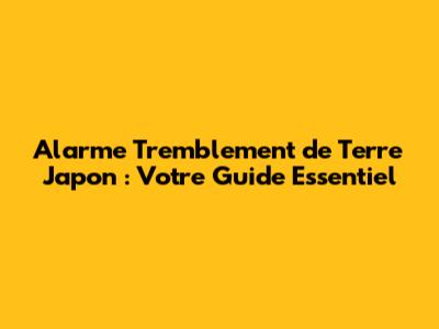 Alarme Tremblement De Terre Au Japon : Guide Complet