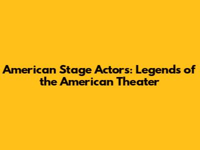American Stage Actors: Legends Of The American Theater