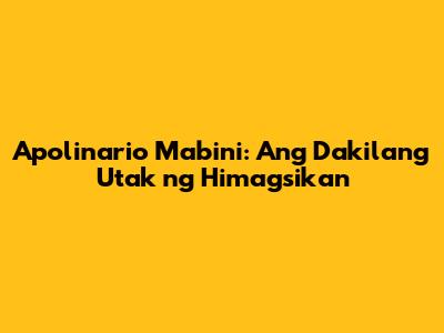 Apolinario Mabini, kilala bilang ang Dakilang Lumpo at ang Utak ng Himagsikan, ay isa sa mga pinakadakilang bayani ng Pilipinas. Guys, pag-usapan natin ang buhay at legacy ng isang taong hindi lamang nagbigay ng inspirasyon sa atin kundi pati na rin naghubog ng kasaysayan ng ating bansa. Si Mabini ay hindi lamang isang pulitiko o isang rebolusyonaryo; siya ay isang pilosopo, isang manunulat, at isang strategist na ang mga ideya ay patuloy na gumagabay sa atin hanggang sa kasalukuyan. Ang kanyang dedikasyon sa kalayaan, katarungan, at pagkakapantay-pantay ay nagbigay-daan sa pagbuo ng isang bansa na hangad na maging malaya at may sariling pagkakakilanlan.