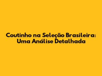 Coutinho Na Seleção: Análise Da Convocação E Expectativas
