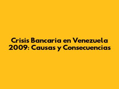 Crisis Bancaria En Venezuela 2009: Causas Y Consecuencias