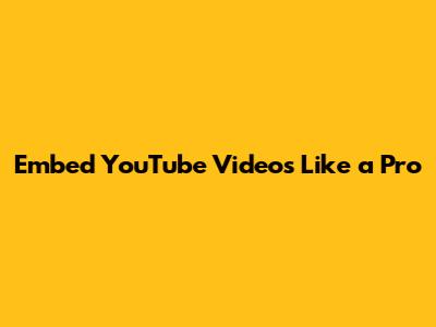 Embed YouTube Videos Like A Pro