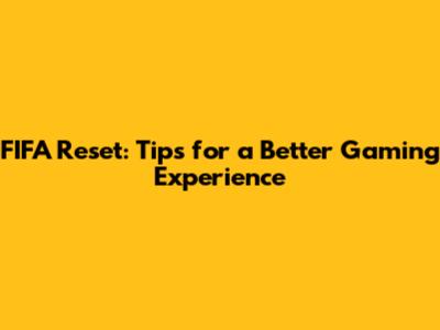 FIFA Reset: Tips For A Better Gaming Experience
