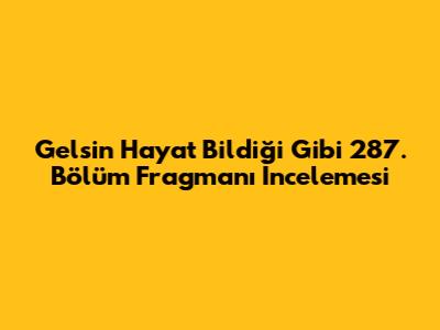 Gelsin Hayat Bildiği Gibi 287. Bölüm Fragmanı İncelemesi