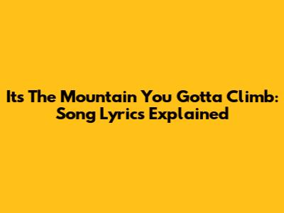 Hey guys! Ever stumbled upon a song that just hits different? Maybe a track that feels like it was written just for you, speaking to your soul in ways you can't quite articulate? Well, "It's The Mountain You Gotta Climb" is one of those songs for a lot of people. It's a powerful anthem about facing challenges, pushing through adversity, and ultimately, finding strength within yourself. We're going to dive deep into the lyrics, break down the meaning, and see why this song resonates so strongly with so many. So, grab your headphones, settle in, and let's unpack this gem together.
