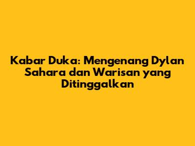 Kabar Duka: Mengenang Dylan Sahara Dan Warisan Yang Ditinggalkan
