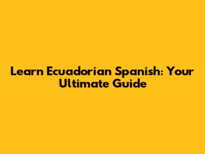 Learn Ecuadorian Spanish: Your Ultimate Guide