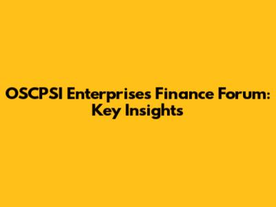 OSCPSI Enterprises Finance Forum: Key Insights
