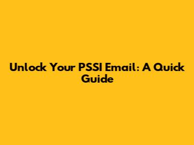 Unlock Your PSSI Email: A Quick Guide