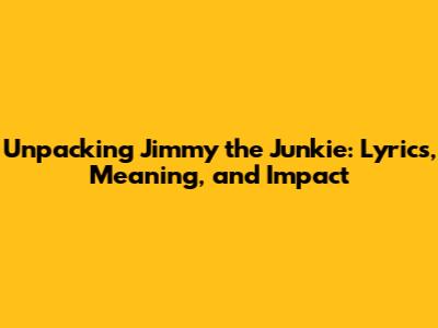 Unpacking 'Jimmy The Junkie': Lyrics, Meaning, And Impact