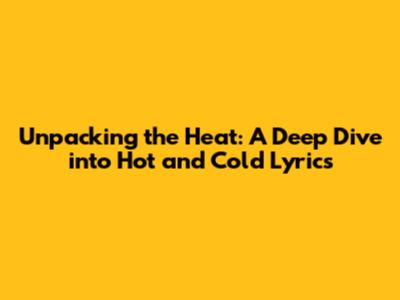 Unpacking The Heat: A Deep Dive Into 'Hot And Cold' Lyrics
