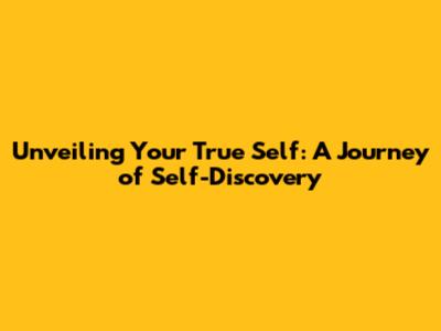 Unveiling Your True Self: A Journey Of Self-Discovery